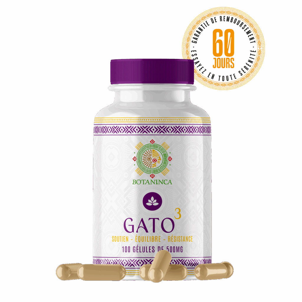 Uña de Gato, plante sacrée d’Amazonie, était autrefois utilisée par les anciens Incas pour renforcer les corps affaiblis et réduire les inflammations profondes. Aujourd’hui, GATO ³ accompagne les corps sollicités, réduit les inflammations profondes et soutient les défenses naturelles avec constance. Une plante de fond pour protéger ce qui s’use à force d’endurer.