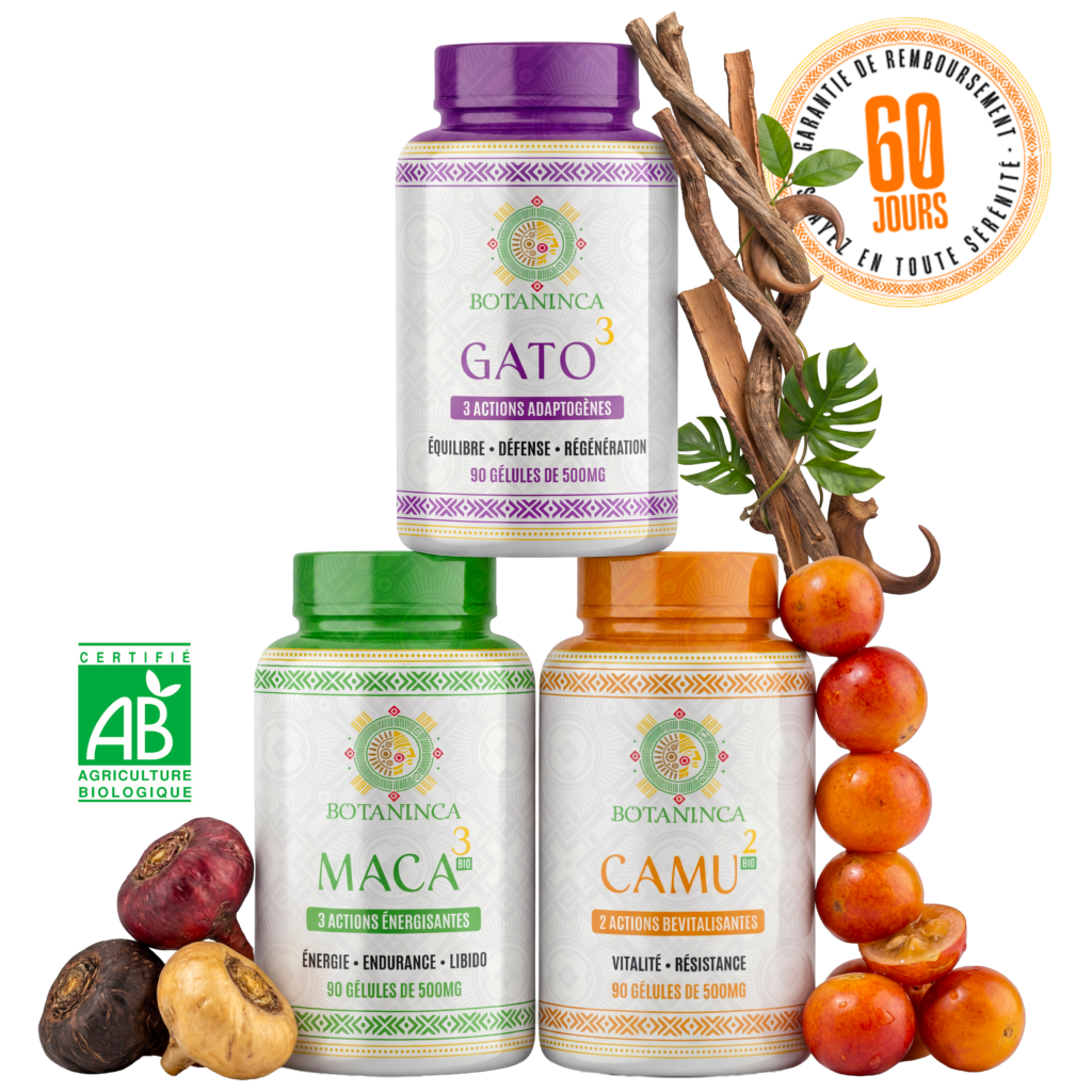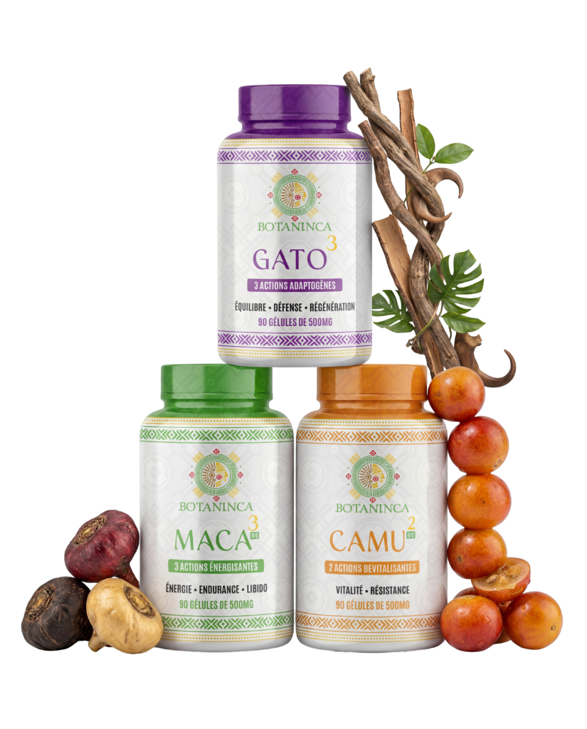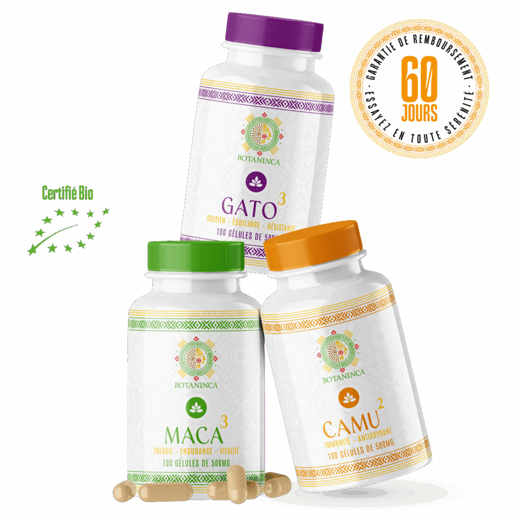 Oui, c’est même recommandé dans certains cas ! Maca, camu camu et uña de gato agissent de manière complémentaire. Vous pouvez les associer sans danger pour renforcer vos résultats :