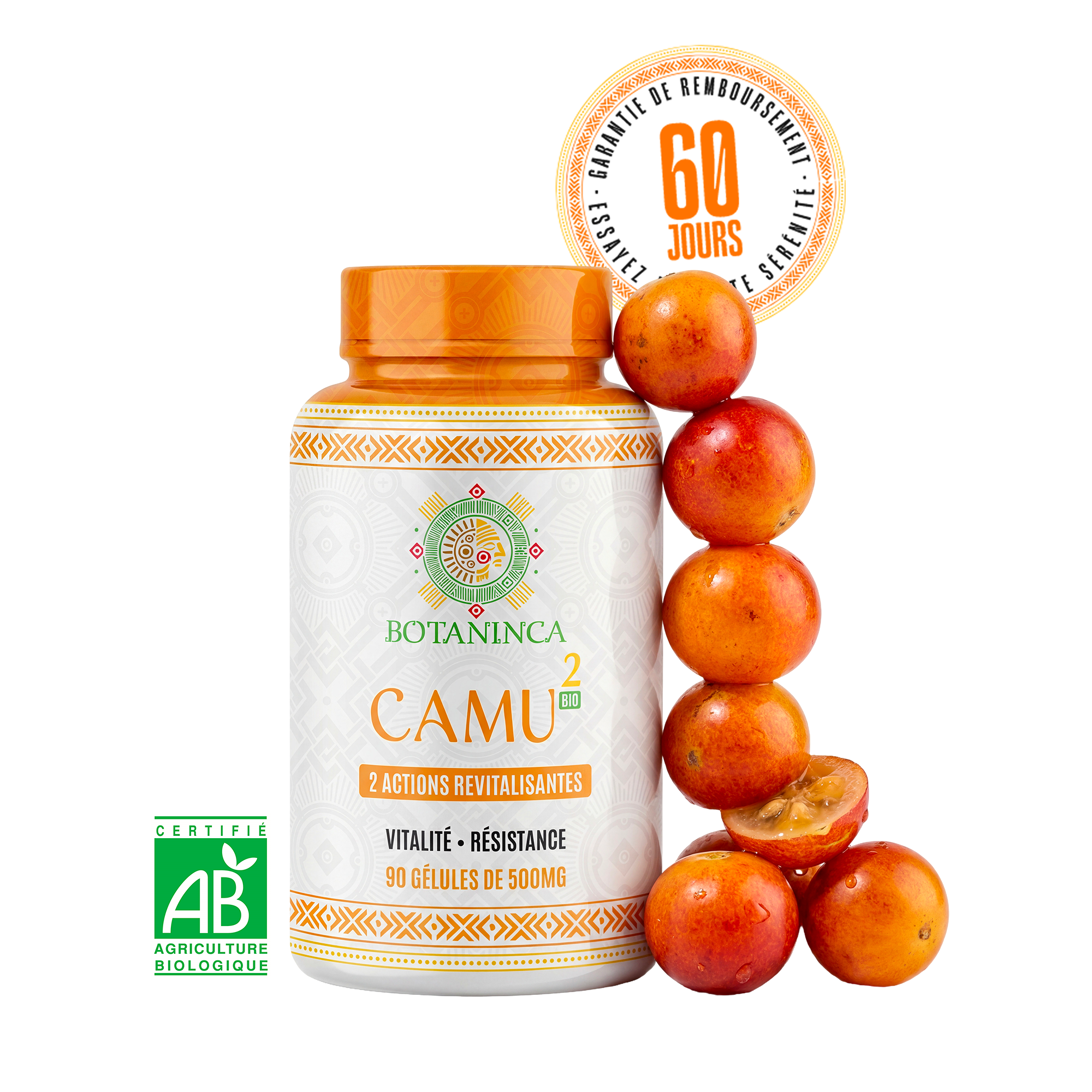 Le Camu Camu est l’un des fruits les plus riches en vitamine C au monde. Autrefois utilisé par les Incas pour renforcer le corps face aux épreuves de l’altitude et du climat. Aujourd’hui, CAMU ² soutient l’immunité, aide à réduire la fatigue et participe à l’équilibre métabolique. Un concentré végétal pour réveiller l’organisme, accompagner les changements, et rester solide dans les périodes exigeantes.