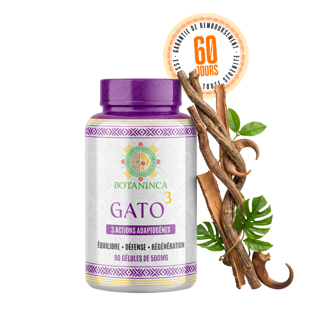 Uña de Gato, Cat’s Claw, la Griffe de Chat. Trois façons de nommer la même liane sacrée d’Amazonie, reconnue sur tous les continents depuis des millénaires. Aujourd’hui, GATO³ réduit les inflammations en profondeur, renforce les défenses naturelles et accompagne les corps qui donnent tout, sans jamais fléchir.